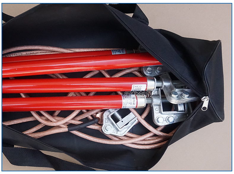 (3)制作工藝: 導(dǎo)線夾、接地夾采用鋁合金或紫銅壓鑄成形;操作棒是玻璃鋼環(huán)氧樹脂管;接地軟銅線采用多股軟銅線絞合而成,外覆透明絕緣護(hù)層。