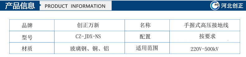 2)型號(hào):CZ-JDX-NS-10kV手握式高壓接地線;